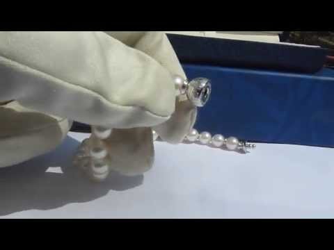 Mikimoto Akoya Pearl Bracelet 18kt white gold with small diamond on clos...
